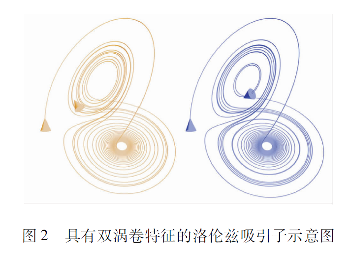 洛倫茲系統其實就是一個簡單的三維自治ODE方程組,洛倫茲發現在某些參數下該系統會出現混沌行為。圖2給出了洛倫茲系統具有雙渦卷特征的混沌吸引子相圖,注意其軌道是永不重復的。