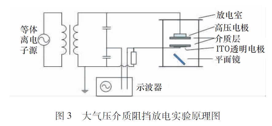 我們這里研究的大氣壓介質阻擋放電和剛才講的非線性動力學到底有什么關系呢?圖3是華南理工大學的放電實驗原理圖。從電路的角度來看,這個實驗系統有一個交流電源,這個電源連接到放電室中,放電室里有電極和阻擋介質,在實驗中我們可以直接測量電源電壓和放電電流。